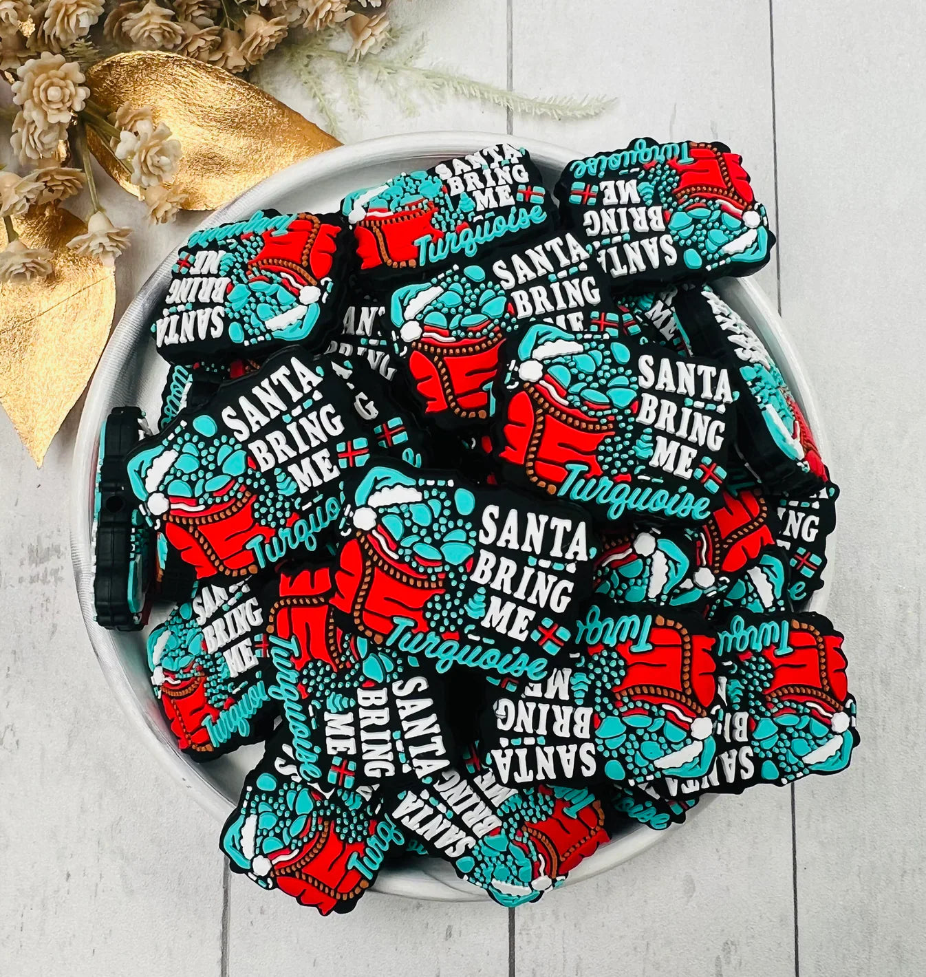 • Exclusive Santa Bring Me Turquoise Christmas Silicone Focal Beads, Christmas Focal Beads